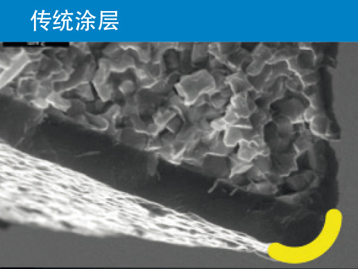 一种申请了专利的全新结构使这一切成为可能,它可以受控地使用刀刃半径区域外切削。另外约 6 μm 的厚涂层外也为这一效应提供了强大支持。
